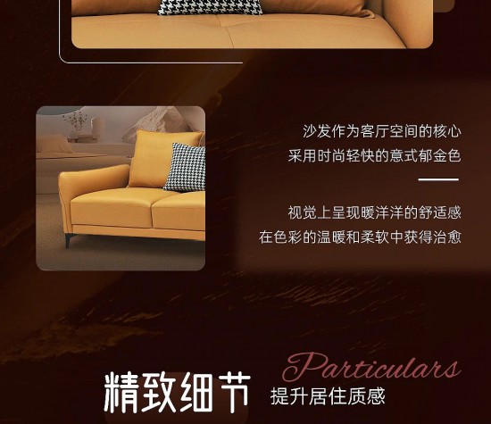核心提示:客廳C位呈現(xiàn)現(xiàn)代,突破常規(guī),坐臥一體異形大轉(zhuǎn)角,改變傳統(tǒng)貴妃位L形擺放。
