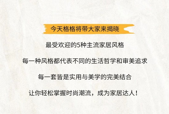 核心提示:最受歡迎的5種主流家居風(fēng)格,每一種風(fēng)格都代表不同的生活哲學(xué)和審美追求,每一套皆是實(shí)用與美學(xué)的完美結(jié)合,讓你輕松掌握時(shí)尚潮流,成為家居達(dá)人!