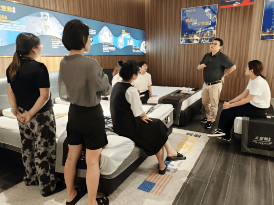 郭木龍總裁親臨杭州富陽(yáng)太空艙床墊品牌專(zhuān)賣(mài)店開(kāi)業(yè)指導(dǎo)店面布局,培訓(xùn)專(zhuān)業(yè)產(chǎn)品知識(shí),實(shí)戰(zhàn)演練助力經(jīng)銷(xiāo)商提高終端銷(xiāo)售。