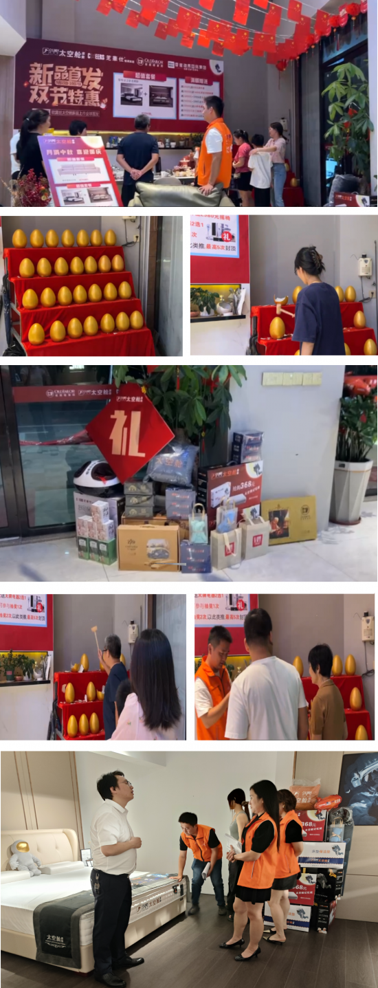 公司大力支持此次陸河雙節(jié)活動,活動現(xiàn)場布置精美禮品堆擺放,吸引顧客到店親身體驗(yàn)歐露絲太空艙床墊產(chǎn)品,促進(jìn)現(xiàn)場接連開單!
