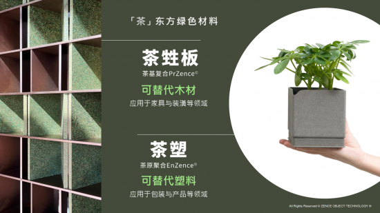 普通的茶渣,在經(jīng)過(guò)收集、篩選、清洗、消毒、干燥、粉碎等環(huán)節(jié)后,變身成為茶基復(fù)合“茶甡板”和茶原聚合“茶塑”,前者可代替木材應(yīng)用于家具與裝潢等領(lǐng)域,后者可代替塑料應(yīng)用于包裝與產(chǎn)品等領(lǐng)域,且實(shí)現(xiàn)100%降解,包括海洋降解、淡水降解、土壤降解,為可持續(xù)發(fā)展提供一種新的方案,實(shí)踐「生生不息,永續(xù)未來(lái)」。