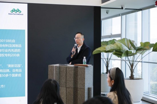 第二家材料企業(yè)是來(lái)自國(guó)內(nèi)的美新科技,其自主研發(fā)的「美新超越木」遠(yuǎn)銷(xiāo)歐美50多個(gè)國(guó)家和地區(qū)。美新科技大客戶總監(jiān)梁其勇介紹說(shuō),作為一家外銷(xiāo)為主的上市企業(yè),隨著國(guó)內(nèi)環(huán)境的變化和可持續(xù)材料需求的增長(zhǎng),「美新超越木」未來(lái)重點(diǎn)將投向國(guó)內(nèi)市場(chǎng)。