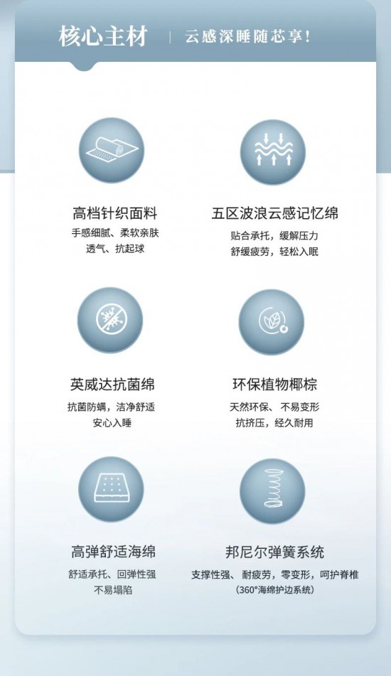 核心提示:深睡眠滿活力云感·深層護(hù)脊釋壓,卸下身心疲憊,舒享優(yōu)質(zhì)睡眠時(shí)光。