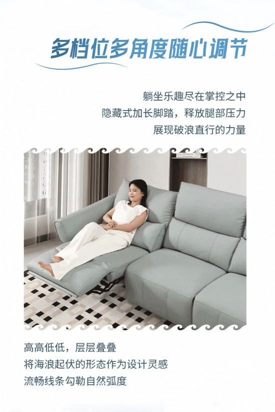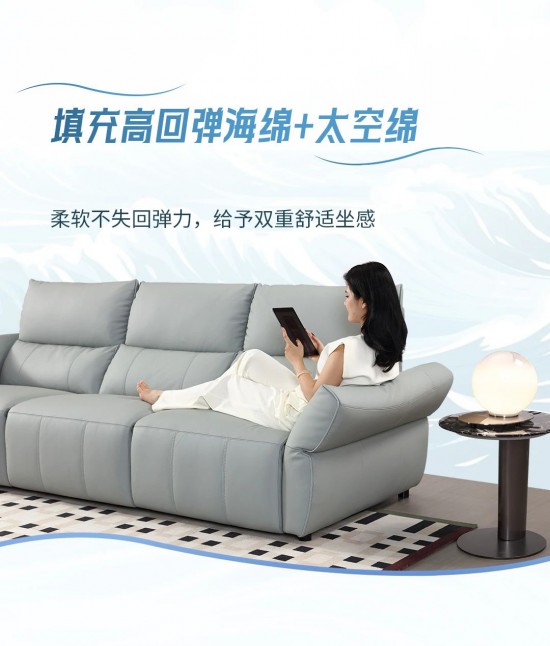核心提示:日光與海舒緩著色,起伏的海浪翻涌出優(yōu)美的姿態(tài)。在悠長(zhǎng)的浪花里,感受與自然相親的愜意。此時(shí)此刻坐在青藍(lán)色的柔軟真皮沙發(fā)上,眼前仿佛就是無(wú)邊無(wú)際的大海,仿怫就能聽(tīng)見(jiàn)浪花朵朵翻涌的旋律。