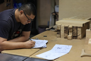 一次不經(jīng)意的校園導(dǎo)覽,成為了命運(yùn)轉(zhuǎn)折的契機(jī)。參觀過程中,王萬(wàn)興對(duì)家具工藝與設(shè)計(jì)一見鐘情,其對(duì)創(chuàng)造力、動(dòng)手能力以及設(shè)計(jì)與美學(xué)的多元融合深深打動(dòng)了他,內(nèi)心的聲音告訴他這就是自己想要的專業(yè)。時(shí)至今日,王萬(wàn)興仍深感命運(yùn)的眷顧與偏愛,讓他踏上這條用設(shè)計(jì)與手工表達(dá)自我、探索藝術(shù)的道路。