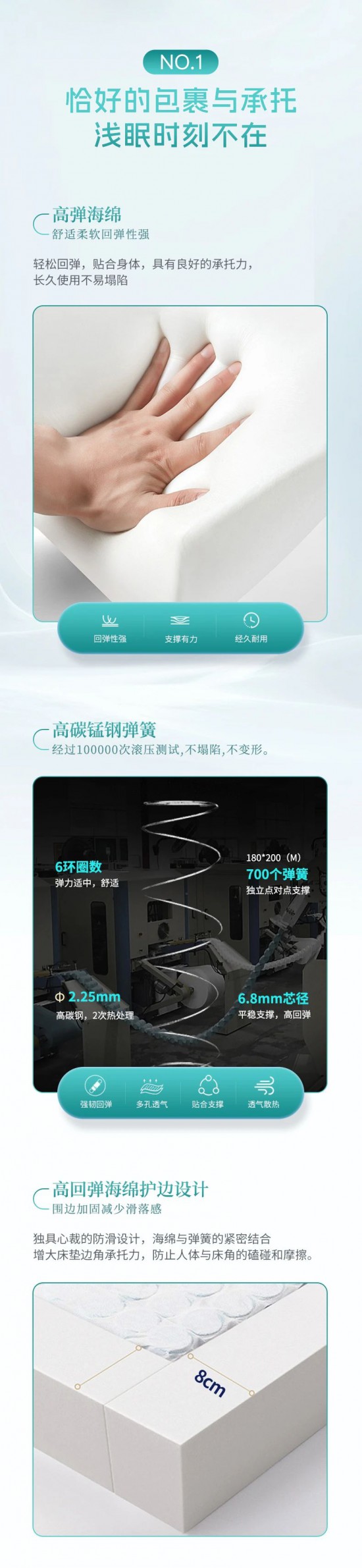 核心提示:獨具心裁的防滑設(shè)計,海綿與彈簧的緊密結(jié)合,增大床墊邊角承托力,防止人體與床角的磕碰和摩擦。