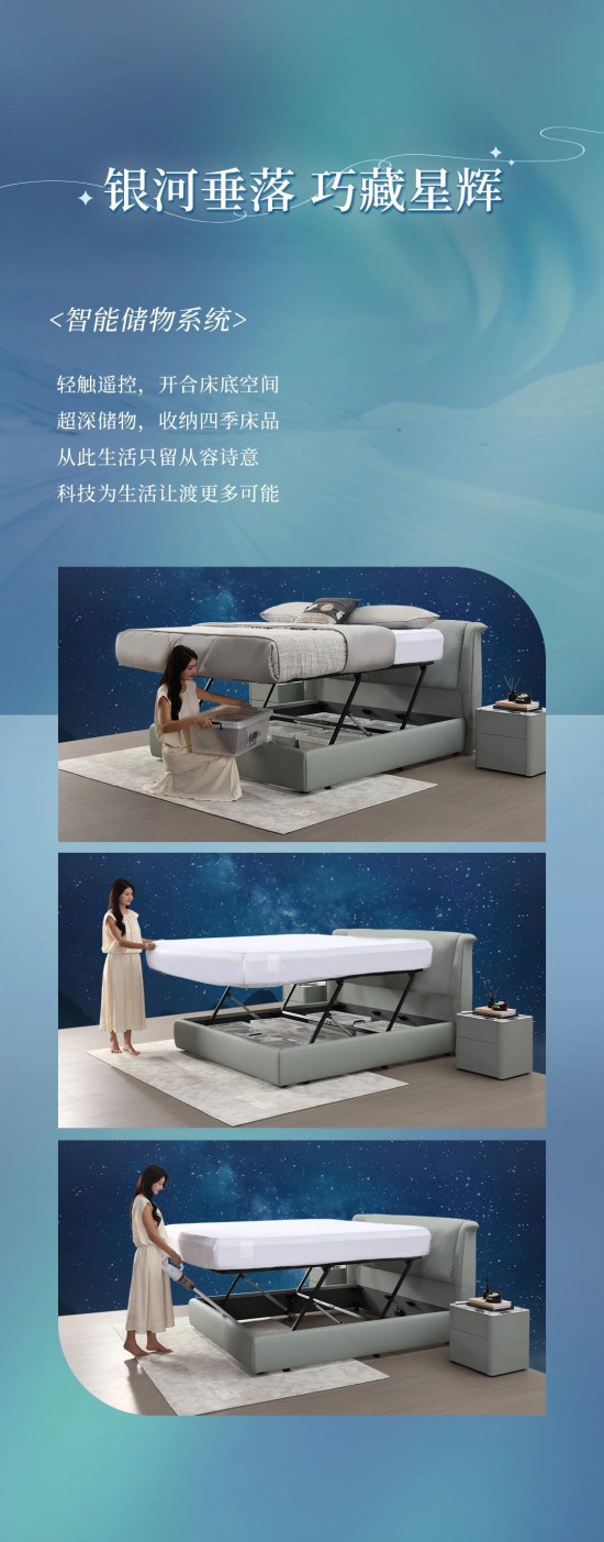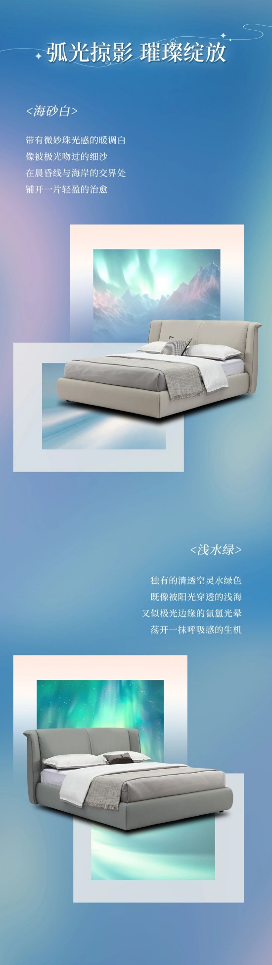 核心提示:靈動流光床背,如極光般勾勒輕盈廓形,指尖掠過立體絎縫的翹邊,如觸碰銀河散落的溫柔刻度,每一次倚靠都陷于光的擁抱。