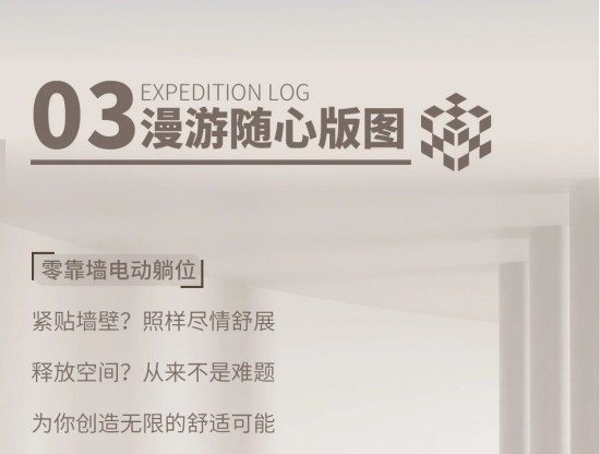 核心提示:零靠墻電動躺位,緊貼墻壁照樣盡情舒展,釋放空間從來不是難題,為你創(chuàng)造無限的舒適可能。
