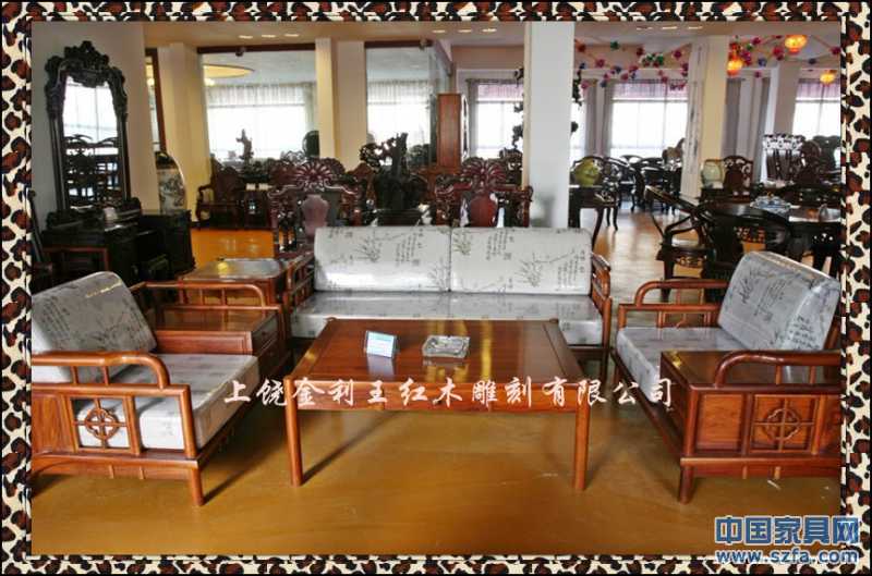 上饒市金利王紅木雕刻有限公司,座落于江西省上饒市經(jīng)濟(jì)開發(fā)區(qū)鳳凰園區(qū),是一家專門從事中高檔紅木家具生產(chǎn)的專業(yè)廠家。本公司視質(zhì)量與信譽(yù)為企業(yè)生存和發(fā)展的根本,潛心為客戶的利益而開發(fā)創(chuàng)新各種款式別致的優(yōu)質(zhì)產(chǎn)品。本公司產(chǎn)品選材于東南亞進(jìn)口的黃花梨、紫檀、酸枝、緬甸花梨等珍貴紅木,其特點(diǎn)色澤深沉、質(zhì)地精密、紋理細(xì)膩。公司擁有精湛的技術(shù),產(chǎn)品手工制作,名師打理,設(shè)計(jì)精美,制作精巧,榫卯牢固,舒適耐用。既傳承傳統(tǒng)的雕刻技術(shù),研發(fā)古典藝術(shù)家具,又融入了新的潮流構(gòu)思,其人、物、花、鳥栩栩如生,龍、鳳、獅、虎神采飛揚(yáng),富含東方神韻,各類產(chǎn)品深受廣大消費(fèi)者和藝術(shù)愛好者的親睞。