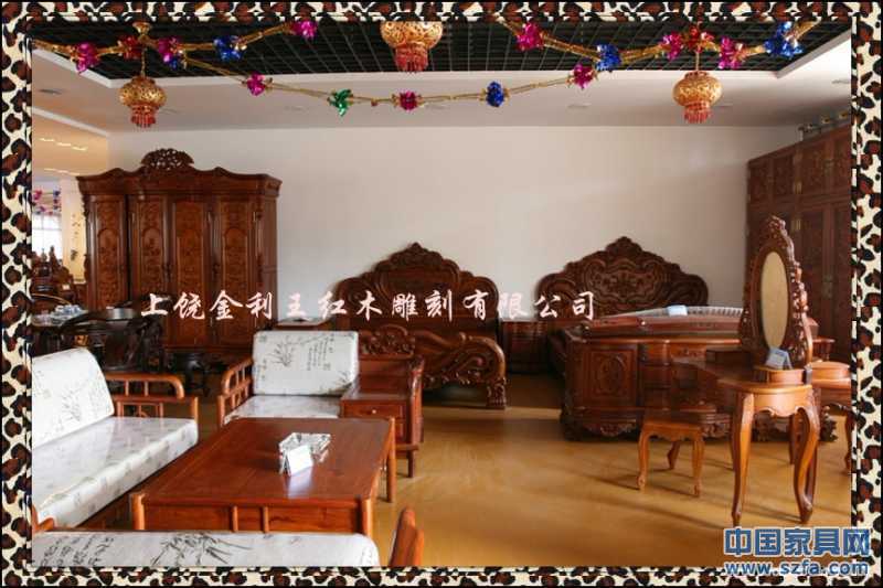 上饒市金利王紅木雕刻有限公司,座落于江西省上饒市經(jīng)濟(jì)開發(fā)區(qū)鳳凰園區(qū),是一家專門從事中高檔紅木家具生產(chǎn)的專業(yè)廠家。本公司視質(zhì)量與信譽(yù)為企業(yè)生存和發(fā)展的根本,潛心為客戶的利益而開發(fā)創(chuàng)新各種款式別致的優(yōu)質(zhì)產(chǎn)品。本公司產(chǎn)品選材于東南亞進(jìn)口的黃花梨、紫檀、酸枝、緬甸花梨等珍貴紅木,其特點(diǎn)色澤深沉、質(zhì)地精密、紋理細(xì)膩。公司擁有精湛的技術(shù),產(chǎn)品手工制作,名師打理,設(shè)計(jì)精美,制作精巧,榫卯牢固,舒適耐用。既傳承傳統(tǒng)的雕刻技術(shù),研發(fā)古典藝術(shù)家具,又融入了新的潮流構(gòu)思,其人、物、花、鳥栩栩如生,龍、鳳、獅、虎神采飛揚(yáng),富含東方神韻,各類產(chǎn)品深受廣大消費(fèi)者和藝術(shù)愛好者的親睞。
