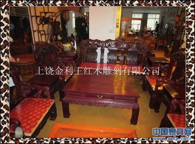 上饒市金利王紅木雕刻有限公司,座落于江西省上饒市經(jīng)濟(jì)開(kāi)發(fā)區(qū)鳳凰園區(qū),是一家專門(mén)從事中高檔紅木家具生產(chǎn)的專業(yè)廠家。本公司視質(zhì)量與信譽(yù)為企業(yè)生存和發(fā)展的根本,潛心為客戶的利益而開(kāi)發(fā)創(chuàng)新各種款式別致的優(yōu)質(zhì)產(chǎn)品。本公司產(chǎn)品選材于東南亞進(jìn)口的黃花梨、紫檀、酸枝、緬甸花梨等珍貴紅木,其特點(diǎn)色澤深沉、質(zhì)地精密、紋理細(xì)膩。公司擁有精湛的技術(shù),產(chǎn)品手工制作,名師打理,設(shè)計(jì)精美,制作精巧,榫卯牢固,舒適耐用。既傳承傳統(tǒng)的雕刻技術(shù),研發(fā)古典藝術(shù)家具,又融入了新的潮流構(gòu)思,其人、物、花、鳥(niǎo)栩栩如生,龍、鳳、獅、虎神采飛揚(yáng),富含東方神韻,各類產(chǎn)品深受廣大消費(fèi)者和藝術(shù)愛(ài)好者的親睞。