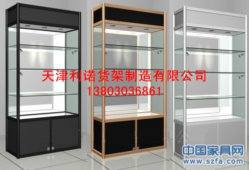 由鈦合金型材,連接鎖,玻璃托,射燈,玻璃層板和鏡子,鋁塑板或三聚纖氨板組成,型材顏色有金黃色,黑色,白色,柜子和LOGO顏色由用戶選定,精品貨架外觀精美,結實耐用,主要用來展示比較輕和比較貴重的東西,如:工藝品,化裝品,電子元件等之類其他產品,精品貨架尺寸可以根據用戶要求來訂做!