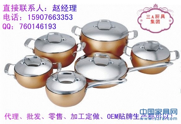 高檔不銹鋼廚具、湯鍋、炒鍋、煎鍋、奶鍋、蒸鍋、刀叉、碗筷碟子等眾多款式,批發(fā)、零售、代理還可以加工定做,OEM貼牌生產(chǎn)!廠家直銷!?。还?、炊具等產(chǎn)品配套的最佳選擇!消費者最愛的禮品,贈品!