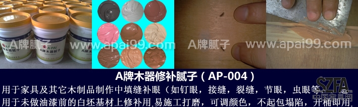 已通過SGS權威檢測,環(huán)保無毒,填充性能強,附著力好,不脫落,不開裂,不起包,防水防潮,易上色,不需要固化或稀釋,開桶即用,可以調(diào)任何顏色,易施工,易打磨,適合任何木材或木制品上修補使用! |