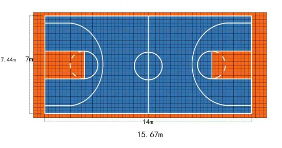1、籃球比賽場是一個長方形的堅實平面,無障礙物。