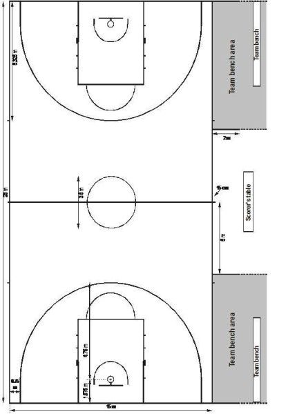 球隊席區(qū)域應標在記錄臺和球隊成同側的場外。每個區(qū)域由一條從端線向外延伸至少長2米的線和另一條離中線5米且與邊線成直角并至少長2米的線所限定。球隊席區(qū)域內(nèi)必須有14個座位供教練員、替補隊員使用。任何其他人員應在球隊席后面至少2米處。
