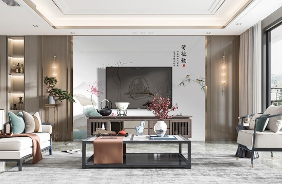 新中式客廳背景墻設(shè)計(jì)效果圖(上)