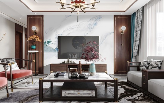 新中式客廳背景墻設(shè)計(jì)效果圖(上)