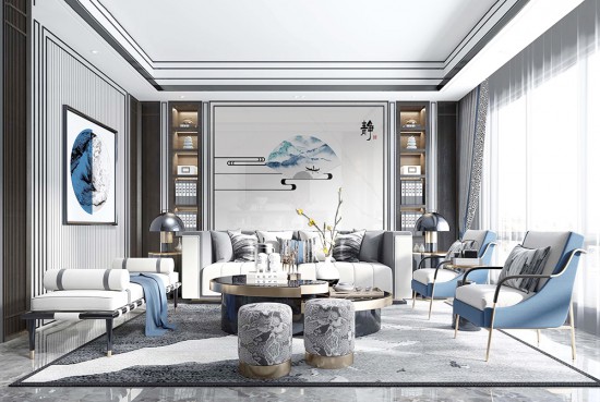 新中式客廳背景墻設(shè)計效果圖(下)
