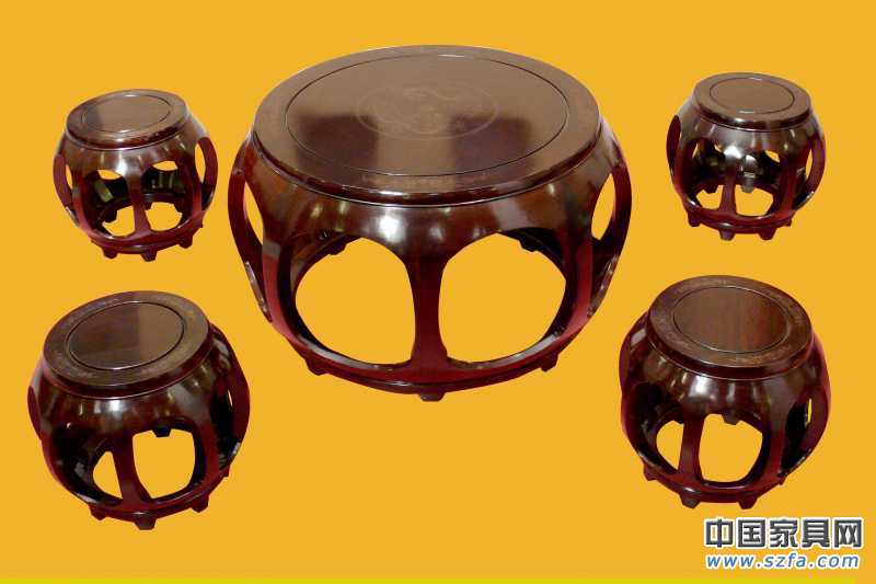 花梨鼓桌鼓凳5件套