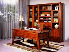 (2) 簡約的書桌臺色澤光潤飽滿,與書柜相得益彰,渾..