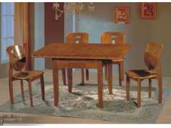 全實木餐桌椅,配備901#餐椅6把,長:1.3米,寬:0.9米,高:0.76米??蓪⒅虚g那節(jié)臺面下降,變成0.9米*0.9米的方桌,適合就餐人數(shù)經(jīng)常變動而又想加大空間的家庭。成都市內(nèi)可送,運費加:100--200元,各地經(jīng)銷及批發(fā)客戶價格可商議。