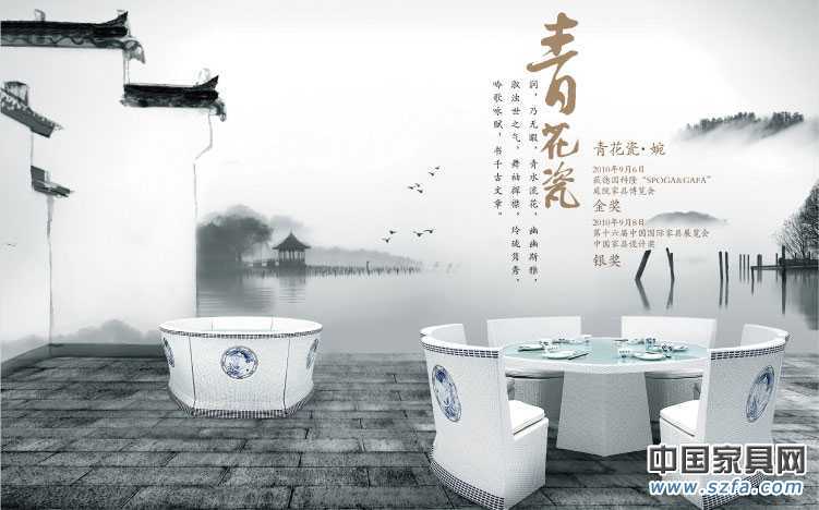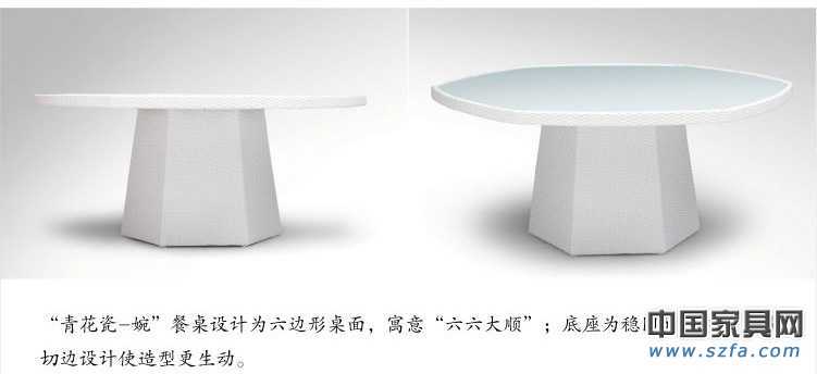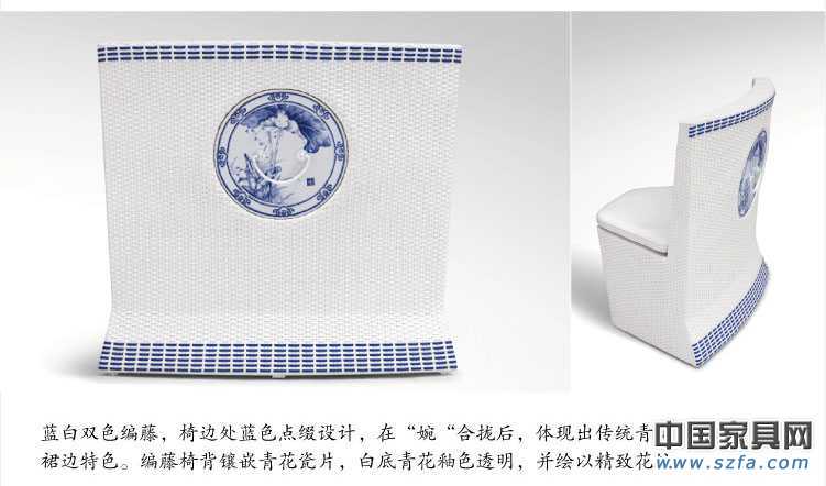 新款【觀唐】花園戶外家具青花瓷-婉 編藤瓷片鑲嵌休閑餐桌藤椅