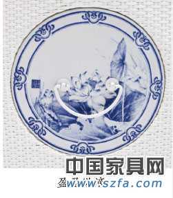 新款【觀唐】花園戶外家具青花瓷-婉 編藤瓷片鑲嵌 休閑餐桌藤椅