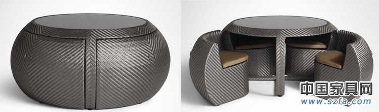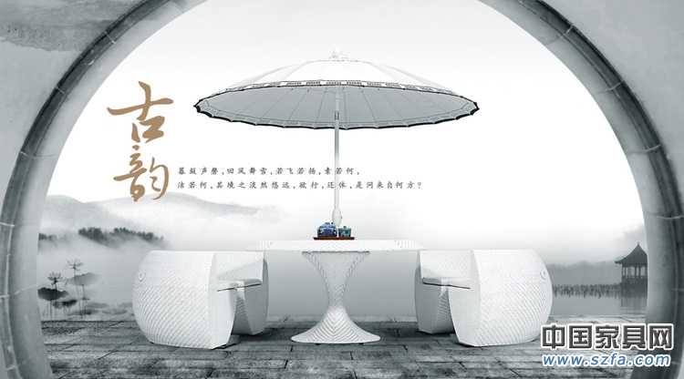 觀唐 家具古韻四座中式鼓編藤 休閑餐桌椅子