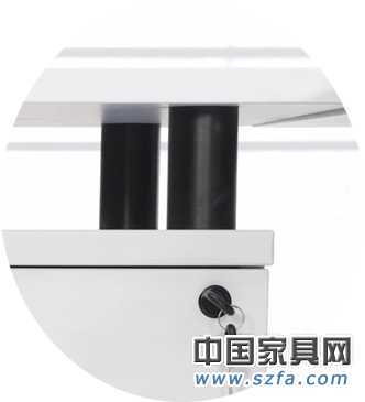 ?鋼腳配有橫檔, 側(cè)柜背板為白色,分左右?