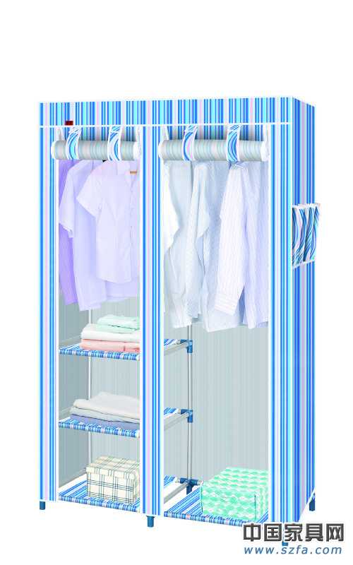 2、布衣柜的布局為左邊三層右邊一層置物層,每層用的材質是牛津布墊底,能防止灰塵或小蟲子進入到衣物上;兩邊上方均有鐵管架可掛衣服,此款結構層教多,能方便地把物品作歸類然后放置好;整體結構非常結實、穩(wěn)固,適合廣大消費者。