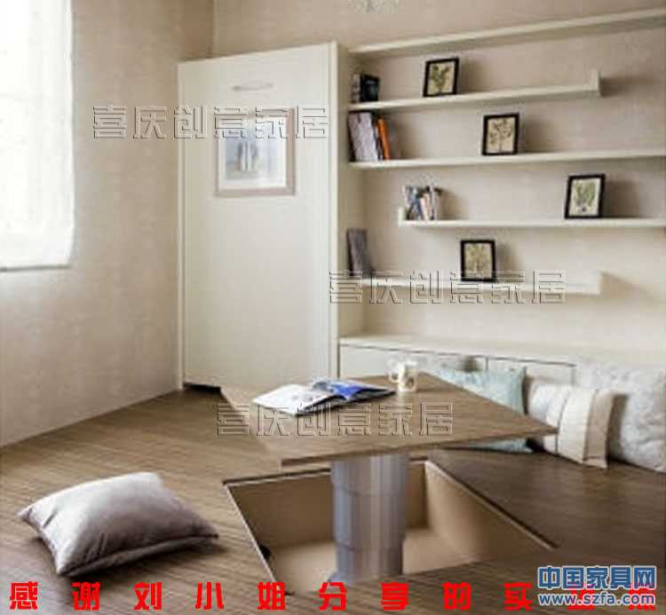 【隱形床簡介】 隱形床又稱為壁床,翻板床。隱形床就是裝在墻上的床,平時外觀如同衣柜,睡覺時將柜門翻下,就是一張標準的席夢思。1916年在美國舊金山,威廉.墨菲發(fā)明了隱形床,固其又名“墨菲床”。“墨菲床”一誕生就風靡了歐美市場,因為它不僅給人們帶來了更便捷的居家生活方式,也為美化空間節(jié)約空間提供了更多可能。時至今天“隱形床”在歐美國家已普遍使用,廣泛應(yīng)用于公寓,酒店,醫(yī)院,辦公室,消防局以及任何其他需要有效利用空間的地方。最近有一個調(diào)查表明:在中國大概有90%的家庭需要一房兩用,而隱形床恰恰是將次臥-書房、客臥-書房、客廳-客臥等完美結(jié)合的產(chǎn)物。