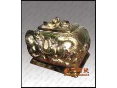 我公司生產(chǎn)的陶瓷殯葬品陶瓷骨灰盒,不但適應(yīng)土葬,而且還適應(yīng)存放。它最大的特點不象其他產(chǎn)品是組合粘接而成,而是一個完整的整體。它耐酸,耐腐,耐氧化,不怕蟲蛀,不怕鼠咬,百年出土后顏色不變,仍象新瓷一樣。讓逝者安睡在九泉之下,不用擔(dān)心骨灰盒會爛,而且品種齊全,款式莊重大方。能滿足社會各階層,各民族習(xí)俗的需要。所以說:從長遠觀點來看,高溫顏色釉陶瓷骨灰盒是喪家的最佳選擇,而且是殯葬領(lǐng)域今后發(fā)展的方向。