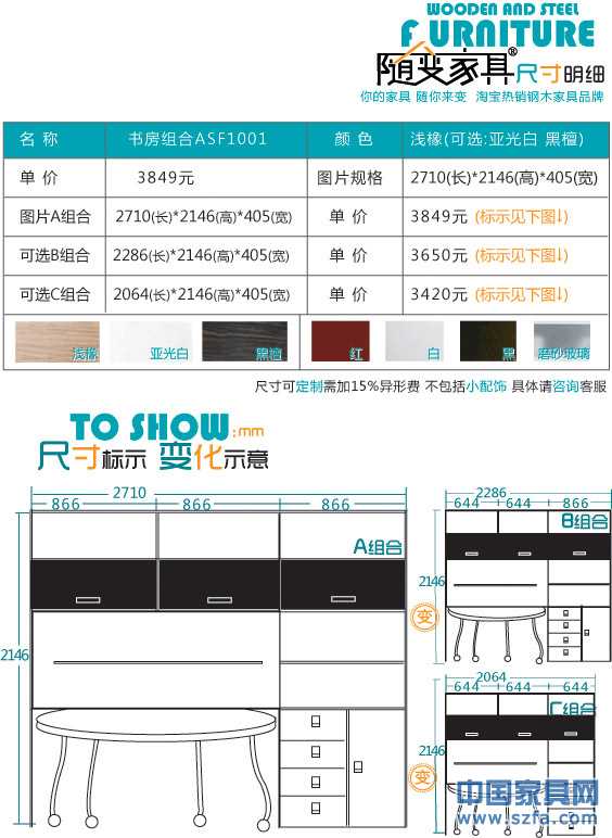 可物流送貨上門再淘大獎(jiǎng)隨變鋼木書房柜類家具連體書桌柜
