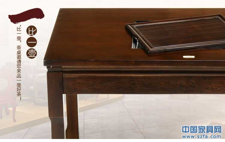 比一壺紅木家具/功夫茶桌實(shí)木仿古家具黑胡桃木方形茶桌073
