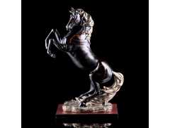 以樹脂為原料,通過(guò)模具澆鑄而成,再以手工精雕細(xì)琢,手工上色,成就此造型美觀形象逼真奔騰之馬,喻一馬當(dāng)先馬到成功。