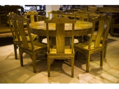 供應(yīng)臻粹閣金絲楠木餐桌圓桌九件套,金絲楠木古典家具