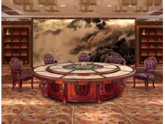桌子由進口橡木制作,傳統(tǒng)純手工雕刻、貼金箔;轉(zhuǎn)盤自動轉(zhuǎn),帶聲控音樂噴泉,遙控控制;轉(zhuǎn)盤上帶2000W電磁爐;臺面上帶800W電磁爐,桌子內(nèi)部為鋼架結(jié)構(gòu),大寶面漆。