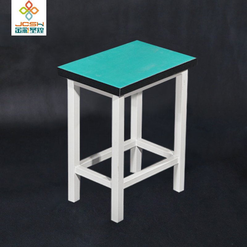 金彩圣煌車間防靜電小方凳外形時尚大方,采用全鋼加厚桌架,桌腿配有保護(hù)腳套,保護(hù)凳子同時保護(hù)地面,采用深綠色防靜電面板、加厚鋼管及耐磨腳墊,更加堅固耐用,是工廠車間和流水線專用的凳子。