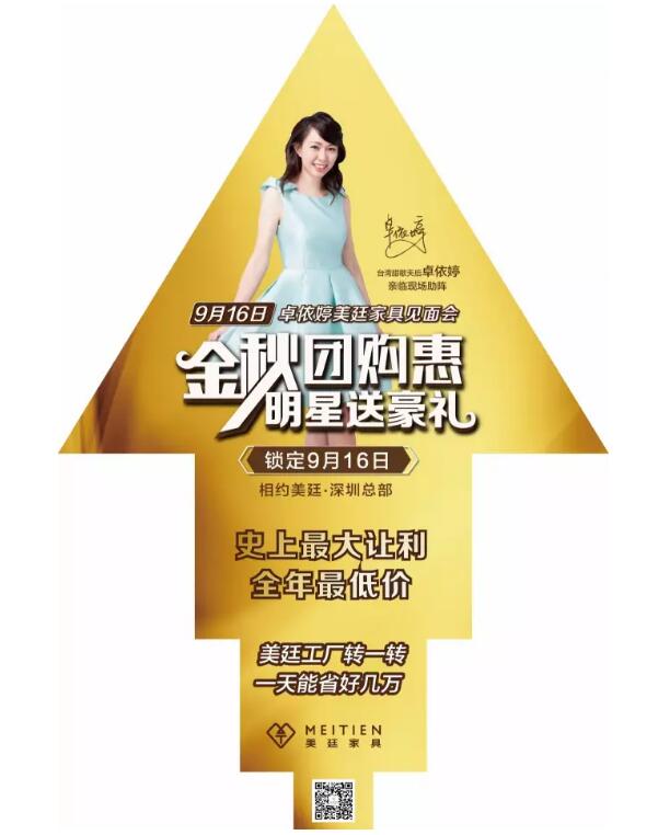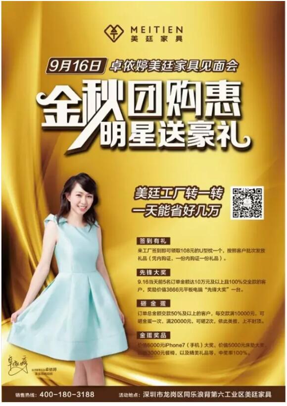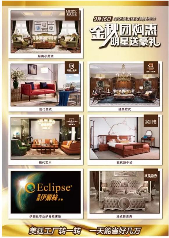工廠直購惠,明星送豪禮,擊穿底價(jià),美廷家具相約9.16,甜歌皇后卓依婷與您相約美廷家具廠,我們與你不見不散!