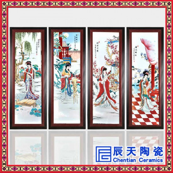 景德鎮(zhèn)辰天陶瓷有限公司生產(chǎn)定做陶瓷工藝瓷板畫、高檔手繪陶瓷瓷版畫:在高溫?zé)频拇砂迳鲜止だL制圖案,再經(jīng)過二次高溫?zé)贫?。是家居大廳中堂、臥室、墻壁、酒店、廳堂、主題公園陶瓷壁畫等裝飾的首選。它具有以下優(yōu)點(diǎn):
