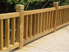 防腐木圍欄是木材經(jīng)過防腐處理,能夠在戶外接觸水與土壤的條件下,具有防腐、防蟲、防霉功能,用于橋梁、道路、建筑物的防護性與欣賞性圍欄。扶手多為木制的,常以木螺絲固定于立桿頂端的通長扁鐵條上,也可用金屬焊接和螺釘固接或以金屬作骨襯,飾以木質(zhì)和塑料面層,或為混凝土澆注、水磨石抹面等。斷面形式和尺寸應(yīng)根據(jù)功能需要。