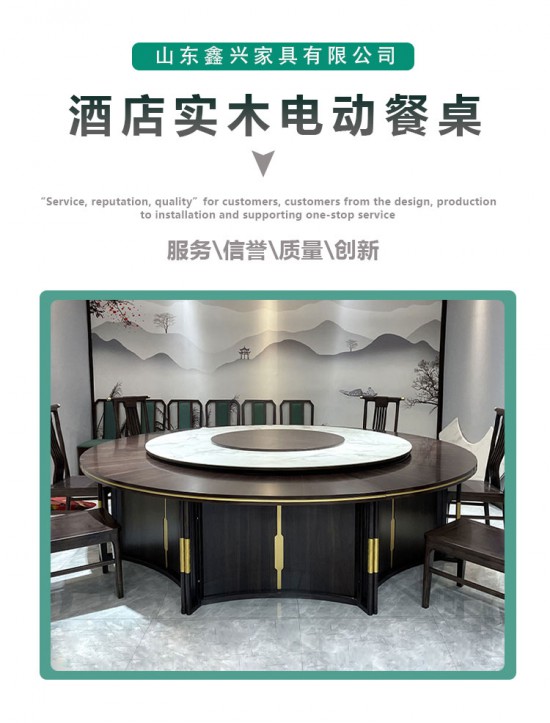 濰坊鑫興 餐飲家具 包廂電動餐桌 實木圓桌 餐桌椅組合 定做