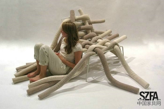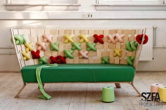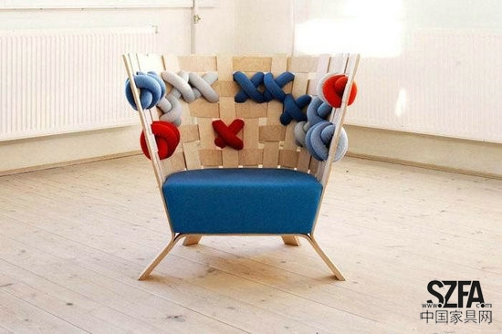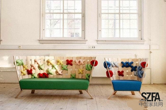哥本哈根設(shè)計(jì)師Ellinor Ericsson曾經(jīng)提出過(guò)為什么北歐家具設(shè)計(jì)里不能加入有一些紡織元素呢,現(xiàn)在她用自己的設(shè)計(jì)給出了一個(gè)幾乎完美的答案。她的最新作品XME系列包含椅子和沙發(fā)兩種,傳統(tǒng)的木材是主題材料。在堅(jiān)硬的木材家具中嵌入柔軟的羊毛編織的布條十字交錯(cuò),錯(cuò)羅有序,別有一番情意,似乎是中國(guó)太極思想中以柔克剛的再釋。