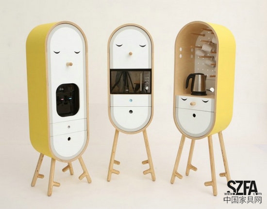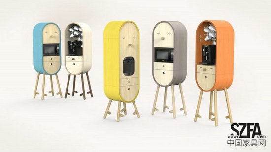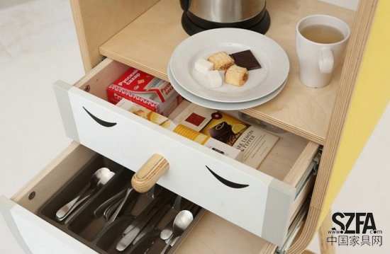 Aotta Studio由Tanya Repina 和 Misha Repin 共同成立,兩人都認為工作時有適當休息是非常重要,因此設(shè)計了微型廚房LOLO。除了橢圓形的外觀,LOLO還有眼睛、嘴巴及鳥仔腳,樣貌十分討好。它有2至3個大小不一的柜子,讓人依自己的需求而組合不同隔層。在抽屜內(nèi)也可設(shè)有分隔欄,讓你可以輕松分類用具與零食。