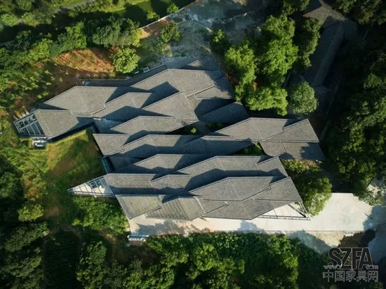該機(jī)構(gòu)隸屬中國(guó)美術(shù)學(xué)院,致力于民間工藝的保護(hù)、振興和再生。它在教育領(lǐng)域中發(fā)揮著十分核心的作用。該建筑占地 4970 平方米,位于象山半山腰,順應(yīng)地勢(shì)就斜坡而建,造型與該地區(qū)地質(zhì)地形十分貼合。俯瞰這里,能感受到設(shè)計(jì)師的對(duì)周圍美景充滿善意的“不打擾”。
