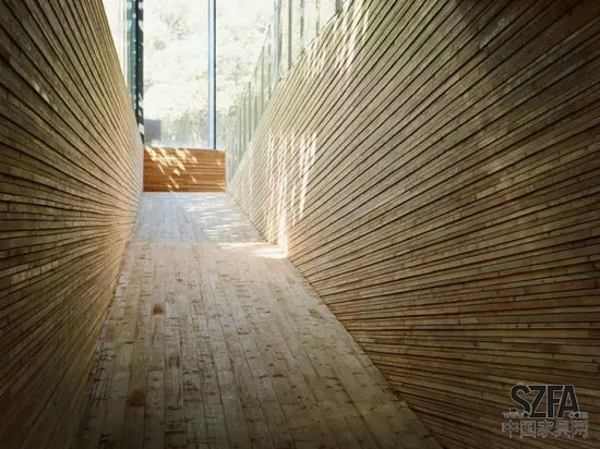 這里的一切皆順承了隈研吾所提出的“負(fù)建筑”理念——建筑“消隱”在自然之中,與環(huán)境毫無(wú)隔閡、渾然一體。
