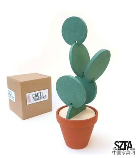 英國設(shè)計師Clive Roddy帶來的Cacti Coasters杯墊組。圓盤可以當(dāng)成杯墊使用,沒那么多杯子的話,或者直接收到陶土罐里,用蓋子蓋好,或者和朋友一起玩?zhèn)€疊疊樂,利用圓盤本身的缺口相互卡榫,堆棧出各種不同造型的另類盆栽,遠遠望去,就好像多肉植物盆栽一樣,還不用怕會忘記澆水、曬太陽。