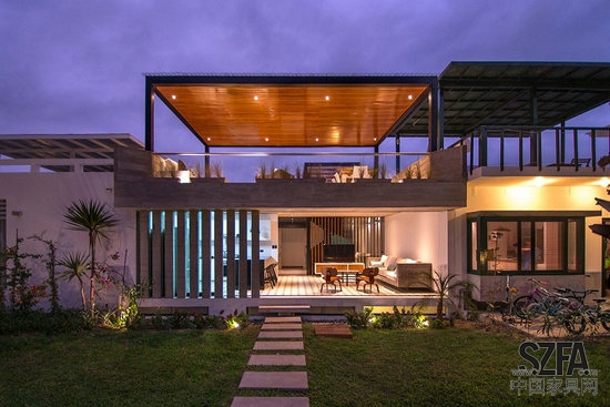 解決方案簡(jiǎn)單并且強(qiáng)調(diào)功能性,最大化利用空間而不犧牲照明和通風(fēng)。房屋有6間自然采光的臥室,光線通過(guò)一個(gè)大的中央庭院照進(jìn)來(lái),院子是流通的核心。設(shè)計(jì)和住宅理念也旨在最大化社交和會(huì)議區(qū)域,其作為室內(nèi)外之間的空間,在房屋不同功能區(qū)之間扮演過(guò)渡空間。