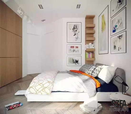 臥室是最為私密的空間,而空白的墻無法滿足女主人美妙的夢境,通過裝書 畫色彩,造型彰顯出舒暢,輕松的意境。